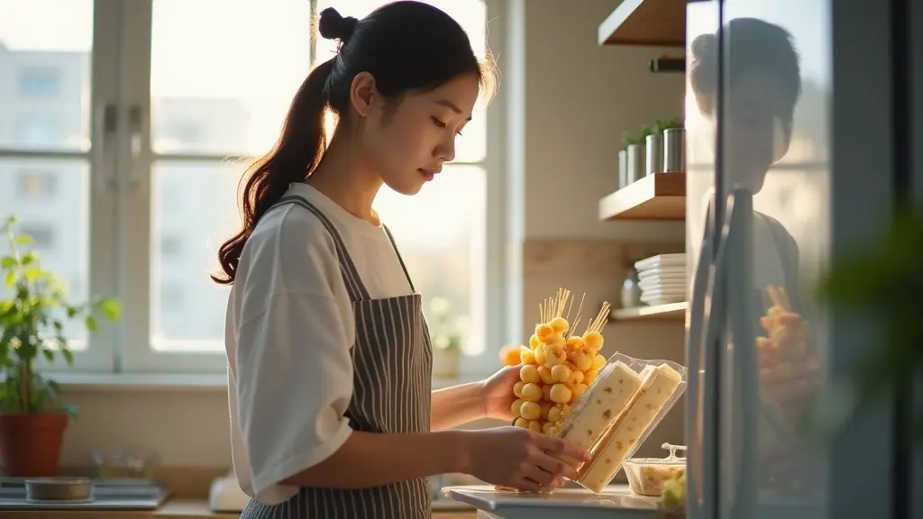 당장 며칠 안에 드실 두부꼬치라면 냉장 보관이 가장 좋아요. 두부는 수분이 증발하지 않도록 하는 게 중요해서, 냉장고의 야채 칸처럼 온도 변화가 적고 습도가 일정한 곳에 보관해 주세요. 이렇게 보관하면 3~4일 동안 신선한 맛을 그대로 즐기실 수 있답니다.